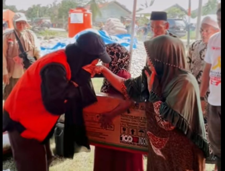 Penyerahan bantuan kemanusian ini dilakukan di desa Alur Jambu, Kecamatan Bandar Pusaka, kabupaten Aceh Tamiang, Minggu 4 Januari 2026.