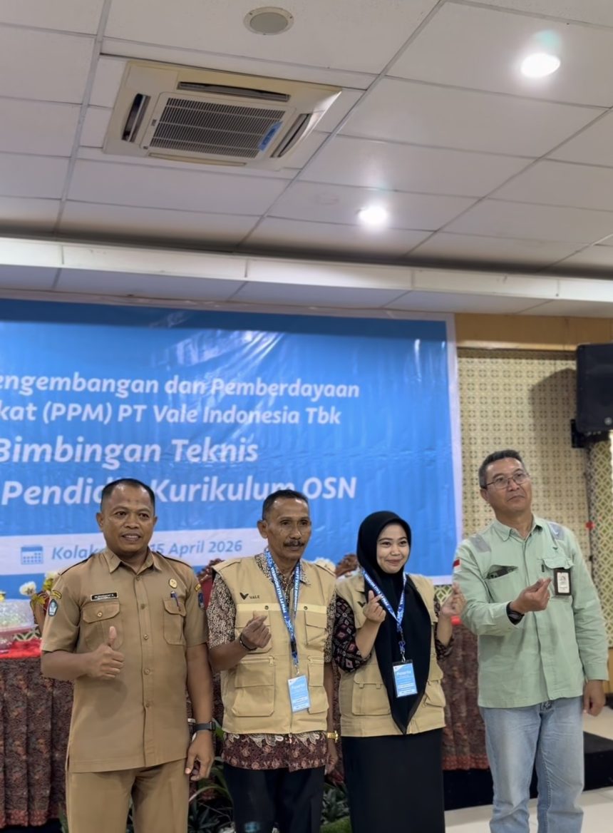 Kolaka — Komitmen PT Vale Indonesia dalam mendorong peningkatan kualitas sumber daya manusia kembali diwujudkan melalui sektor pendidikan. Bekerja sama dengan Dinas Pendidikan Kabupaten Kolaka, PT Vale menggelar Bimbingan Teknis (Bimtek) Kurikulum Olimpiade Sains Nasional (OSN) bagi 50 guru Sekolah Dasar (SD) dan Sekolah Menengah Pertama (SMP) dari wilayah pemberdayaan perusahaan.